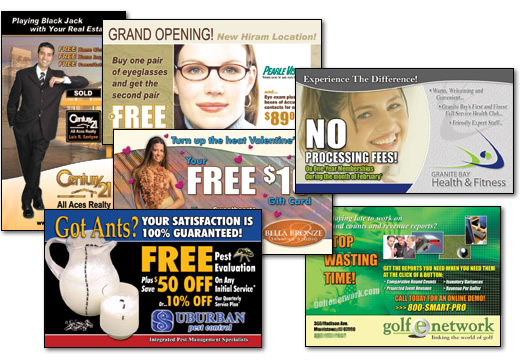 Direct Mail - Various Creative concept, brand development, layout and design of direct mail marketing material for multiple clients in various industries. Responsibilities included client consultation, art direction, layout and design of thousands of direct mail pieces designed for numerous clients. All work designed and produced during my employment with Grip Marketing® (except Golf E-Network shown above). © 2002-2006 Grip Marketing, Inc. All Rights Reserved. © 2004 Golf E-Network. All Rights Reserved. |