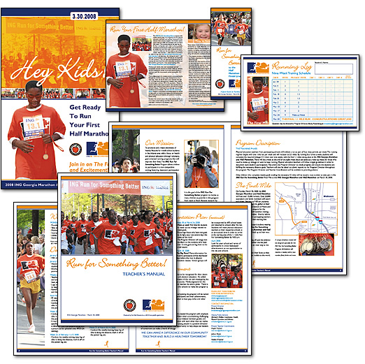 ING Run For Something Better Creative concept, layout and design of various educational and collateral items for the "ING Run For Something Better" program. Promotional pieces included posters, brochure, running log and a teachers' manual, print and online versions. Responsibilities included client consultation, art direction, layout & design, typesetting, photo/image compiling and manipulation. © 2007-2008 Our Kids' Dreams, Inc. All Rights Reserved. |