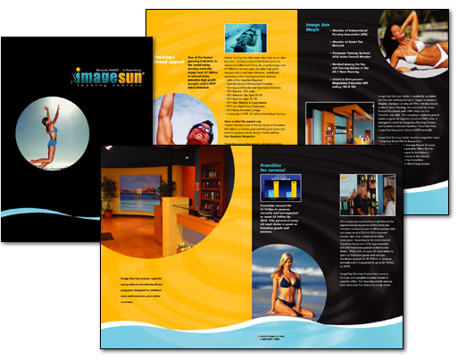 Image Sun Tanning Centers - Franchise Brochure Creative concept, development and design of Image Sun® Tanning Centers' franchise opportunity, multi-page marketing brochure. Responsibilities included client consultation, research, art direction, design, image/photo re-touching and manipulation, and printing management. All work performed during my employment with Grip Marketing® © 2003-2007 Image Sun Tanning Centers. All Rights Reserved. |