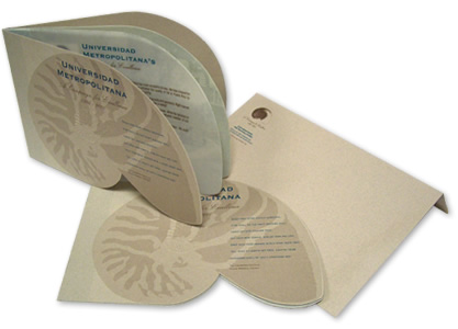 UMET - Universidad Metropolitana (Metropolitan University) Creative concept, development and design for UMET's "A Campaign for Excellence" fund raising, nautilus shaped 2-color brochure. Responsibilities included client consultation, art direction, layout & design and printing management. © 1996 Universidad Metropolitana. All Rights Reserved. |