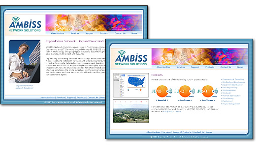 Ambiss Network Solutions Freelance project during 2007. Responsibilities included client consultation, art direction, design and development. © 2007-2008 Ambiss Network Solutions. All Rights Reserved. View live site at www.ambiss.com |