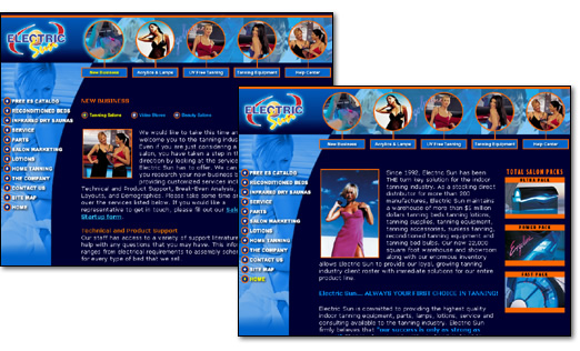 Electric Sun Tan Designed and produced during my employment with Grip Marketing®. Responsibilities included client consultation, art direction, design and development. © 2004 Electric Sun Tan. All Rights Reserved. |