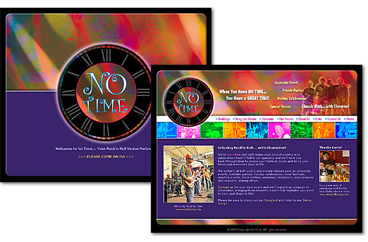 No Time Rock Freelance project during 2007. Responsibilities included client consultation, art direction, design and development. © 2007-2008 No Time Rock. All Rights Reserved. View live site at www.notimerock.com |